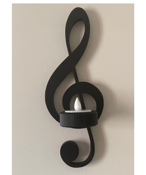 Features: A 3D printed candle stand shaped like the elegant Treble Clef symbol.