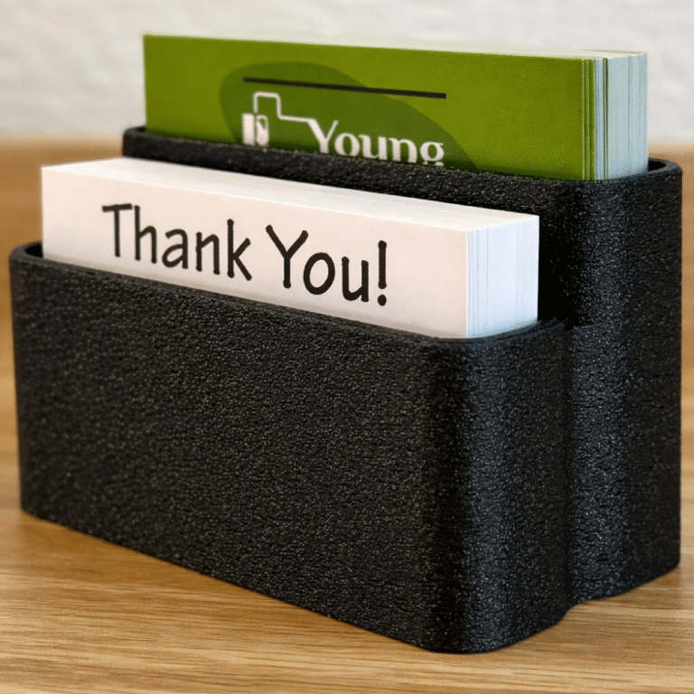 A 2 Tier Card Holder designed for office desks, reception counters, shops, clinics, and corporate workspaces. This 3D printed desk organizer neatly stores visiting cards, business cards, ID cards, and access cards, helping keep your workspace clean, professional, and organized. Ideal for corporate gifting, office use, industrial use, and daily desk organization.