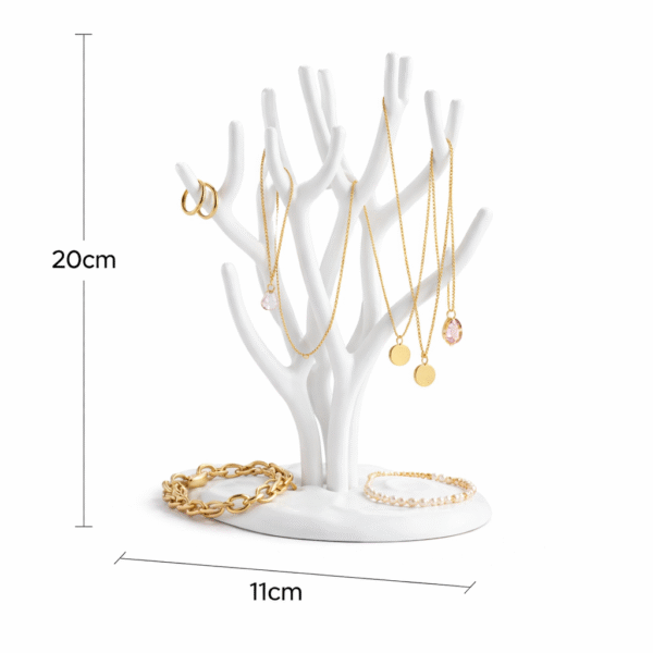 Tree design with multiple branches allows you to hang necklaces, rings, and bracelets separately, preventing tangling and improving visibility.