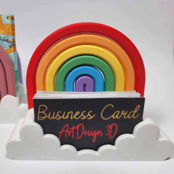 Rainbow 3D Printed Business Card & Napkin Holder, Office Desk Organizer, Restaurant Table Accessory, Café Counter Stand, Reception Desk Holder, Corporate Gift, Workspace Organizer