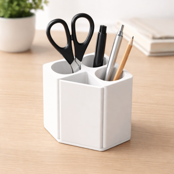 Premium 3D printed pen holder designed for office desks, industrial workstations, study tables and home use. A practical utility gift for engineers, factories, workshops, corporates and professionals to keep stationery organized.