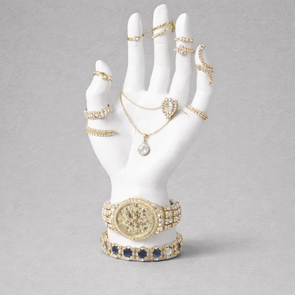 Compact yet highly functional, this display hand organizes multiple rings, bracelets, and chains neatly without occupying extra space.
