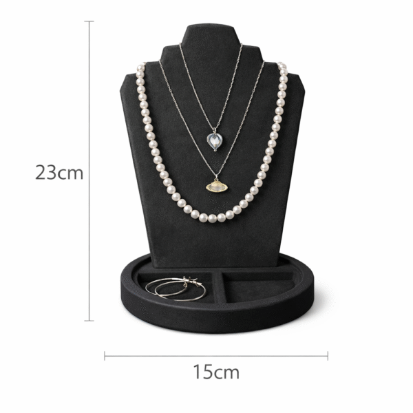 Jewelry Display Stand with Tray | Necklace Organizer Bust Holder for Chains, Earrings & Bracelets | Matte Finish Anti-Slip Base | Premium Dressing Table & Shop Display Stand (Black)