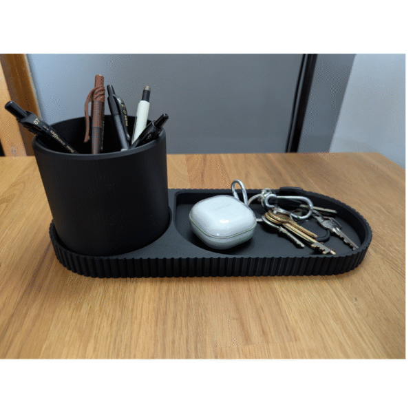 This 3D printed desk organizer is perfect for storing pens, pencils, markers, and stationery on office desks, study tables, school desks, and workstations. Inspired by Stark Tower, it adds a stylish and functional touch to home offices, IT companies, engineering desks, and student study areas.