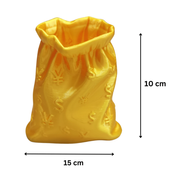 A 3D printed money bag pen holder designed to symbolize wealth, prosperity, and success. Ideal for office desks, trading tables, finance professionals, corporate gifting, business owners, accountants, bankers, startups, and executives. Perfect as a functional desk organizer and premium desktop decor.