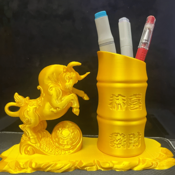Bull Fortune Pen Holder Ornament, Office Desk Organizer, Corporate Gift, Executive Table Decor, Airline Office Gift, Banking Office Decor, IT Company Desk Gift, Business Promotion Gift, 3D Printed Desk Accessory