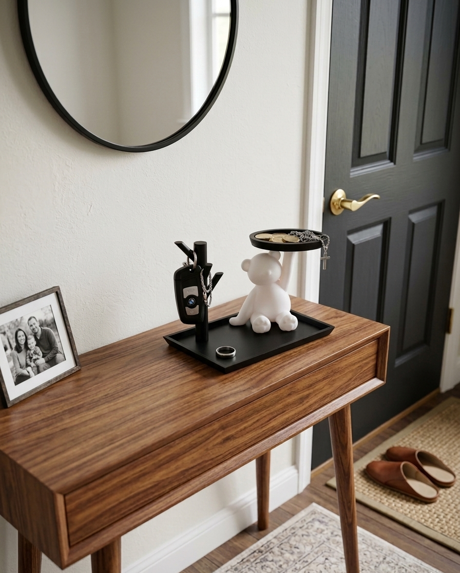 It acts as a pocket dump tray where you can place items when entering home or office.