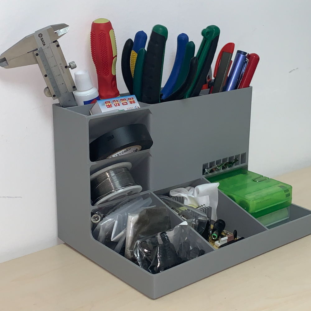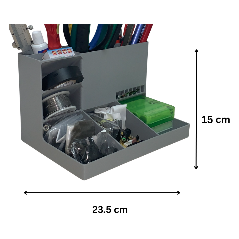 Keep your workspace neat and efficient with this 3D printed desk tool organizer, designed for offices, home workstations, study tables, and industrial desks. A practical and modern desk accessory suitable for IT offices, startups, factories, and professional environments.
