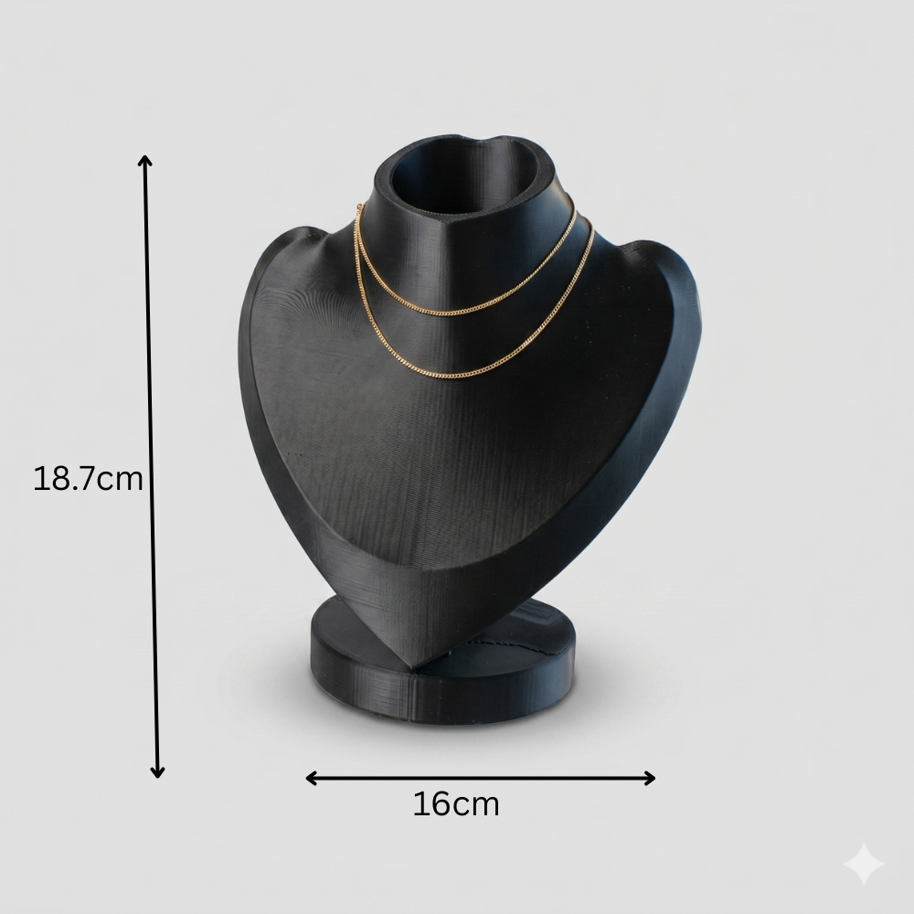 3D Printed Necklace Display Stand – Matte Finish Jewelry Mannequin Bust for Necklaces, Chains, and Pendants – Minimalist Elegant Display Holder for Home & Retail(Black Color)