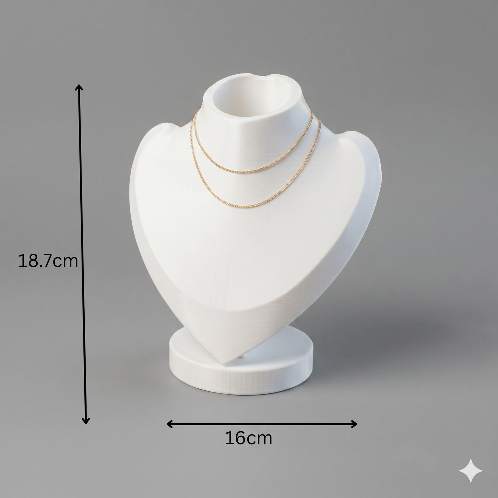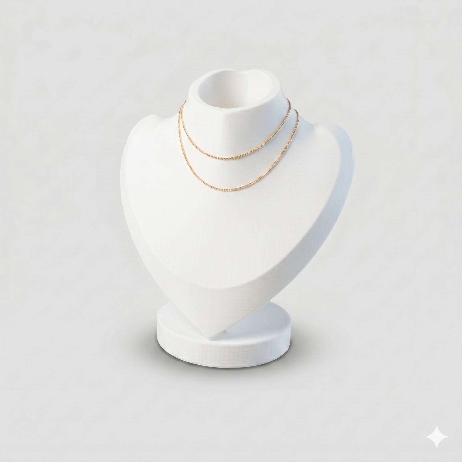 Elevate Your Jewelry Presentation Showcase your collection with professional elegance using our 3D-printed necklace display stand. Designed with a clean, minimalist aesthetic, this mannequin bust features a high-quality matte finish that prevents glare, making it the perfect choice for professional product photography, retail storefronts, or personal vanity organization.