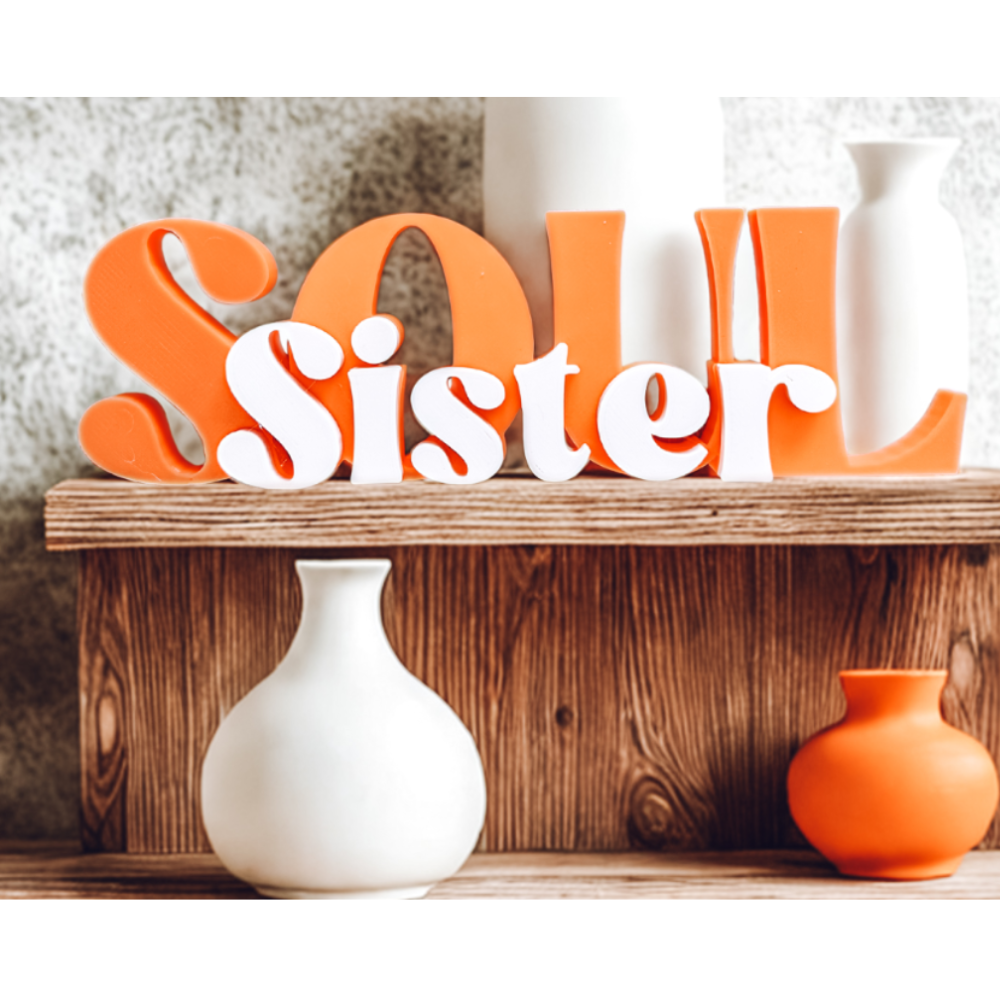 3D Printed Lettering Soul Sister Gift, Sister Day Gift, Birthday Gift for Sister, Best Sister Gift, Friendship Gift, Desk Decor, Home Decor, Office Decor, Girls Room Decor, Sister Appreciation Gift