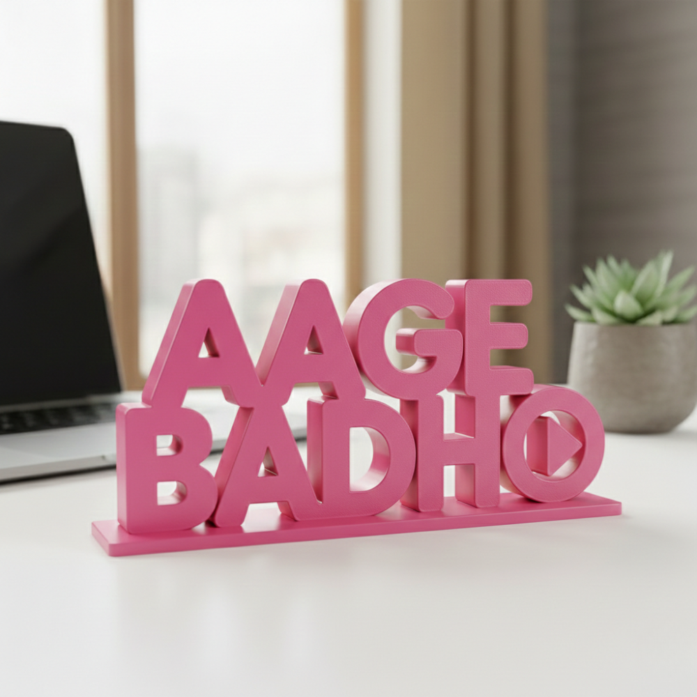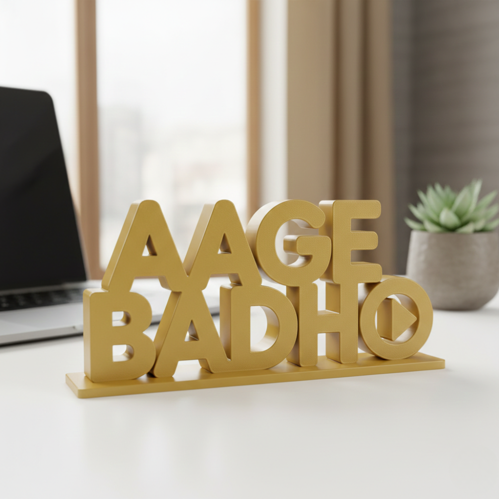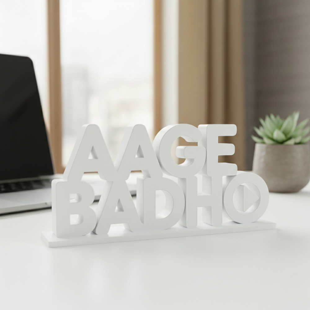 Aage Badho is a thoughtfully designed 3D printed motivational desk showpiece that inspires growth, positivity and forward thinking. Its clean typography and modern form make it an ideal addition to office desks, workstations, reception areas and meeting rooms.