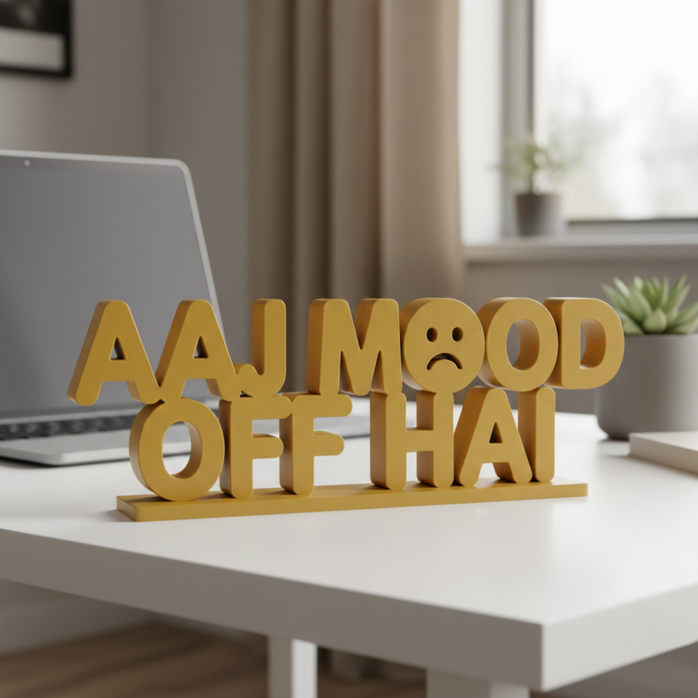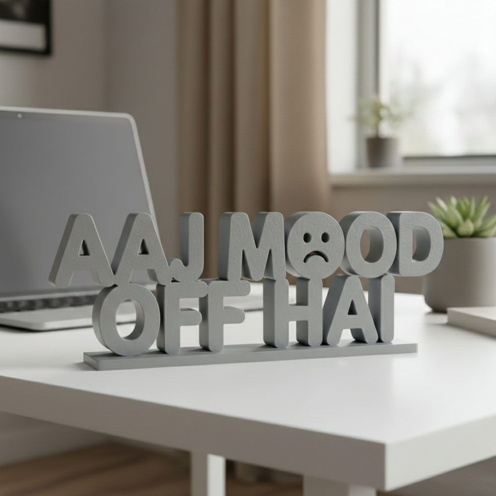 Bring personality and humor to your workspace with the Aaj Mood Off Hai 3D Printed Desk Quote Showpiece. Designed for modern desks and creative interiors, this lightweight yet durable décor piece instantly connects with today’s work culture.
