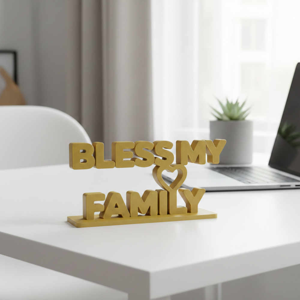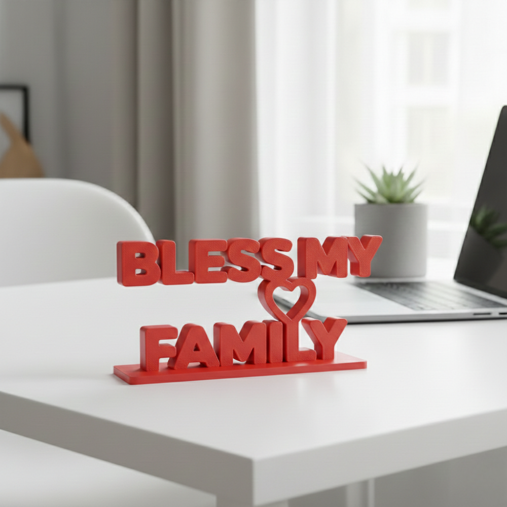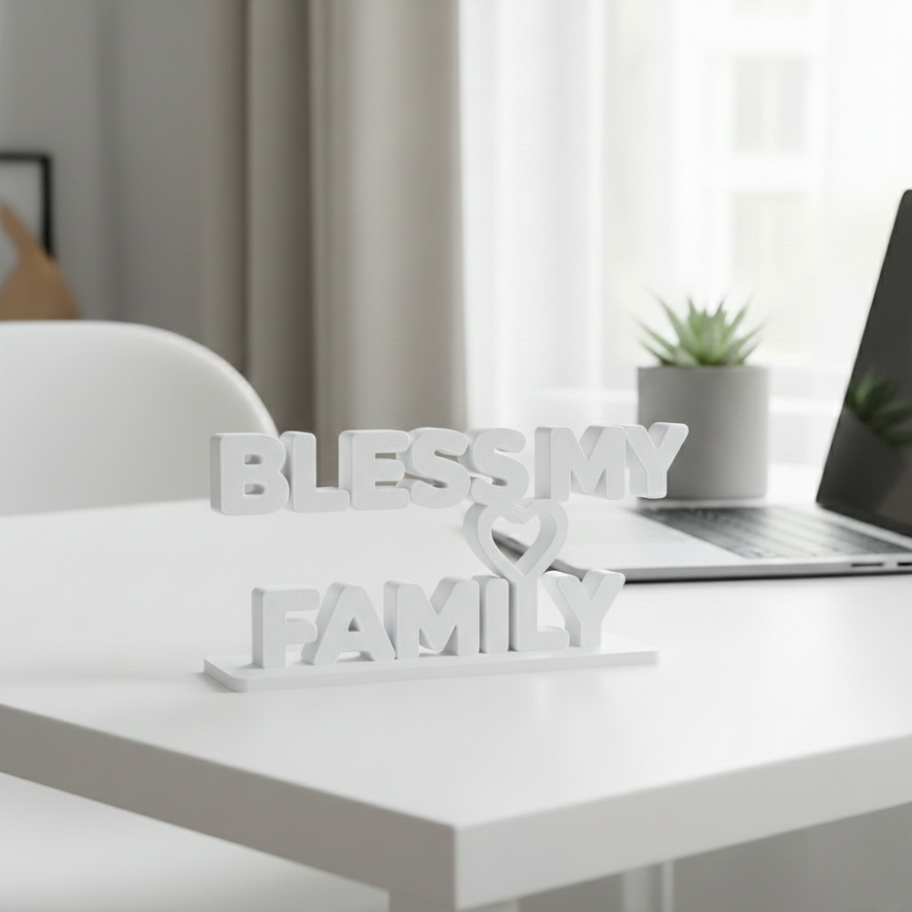 Bring warmth, blessings, and positivity into your home with this elegant Bless My Family 3D Printed Home Decor. Designed using high-precision 3D printing technology, this decorative piece combines modern craftsmanship with meaningful spiritual sentiment.
