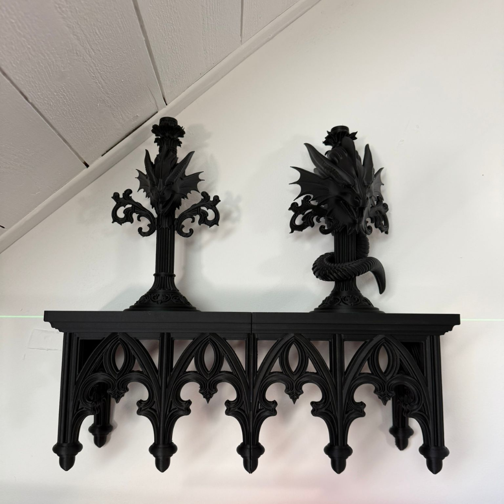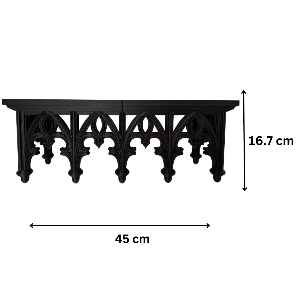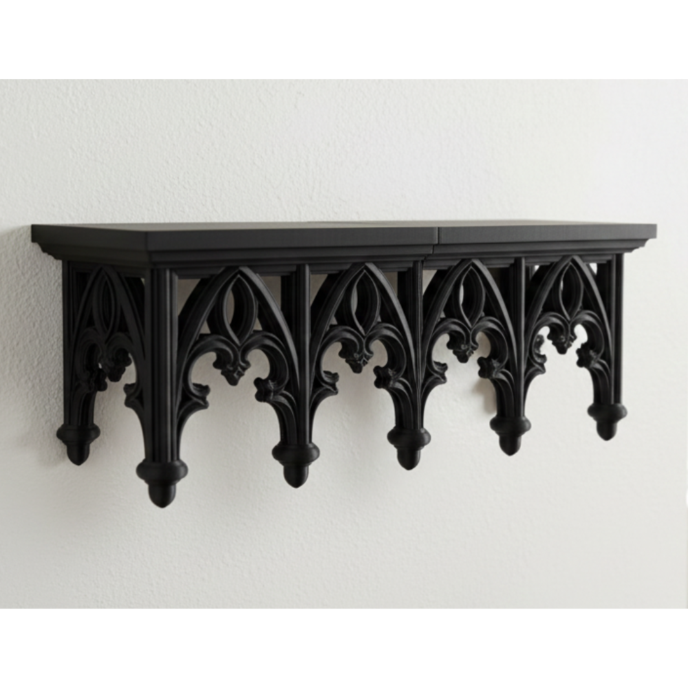 This 3D printed wall shelf is lightweight yet durable, making installation easy without compromising stability. Its gothic design makes it a standout décor element, suitable for modern interiors, vintage themes, minimalist spaces, and artistic environments.