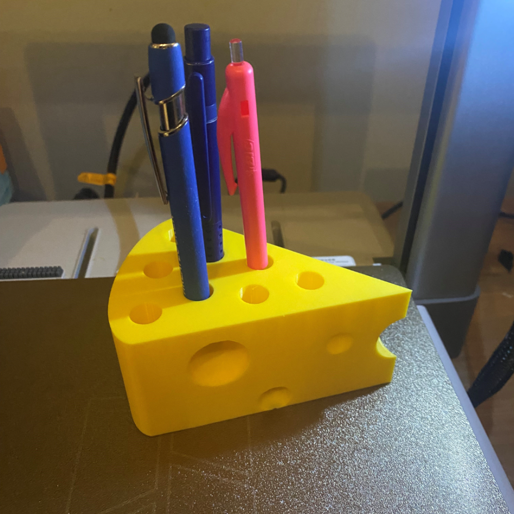 Cheese slice pen holder is a 3D printed desk organizer designed for office, home, school, café, restaurant, and corporate gifting use. Ideal for pens, pencils, markers, and stationery with a fun food-theme design.
