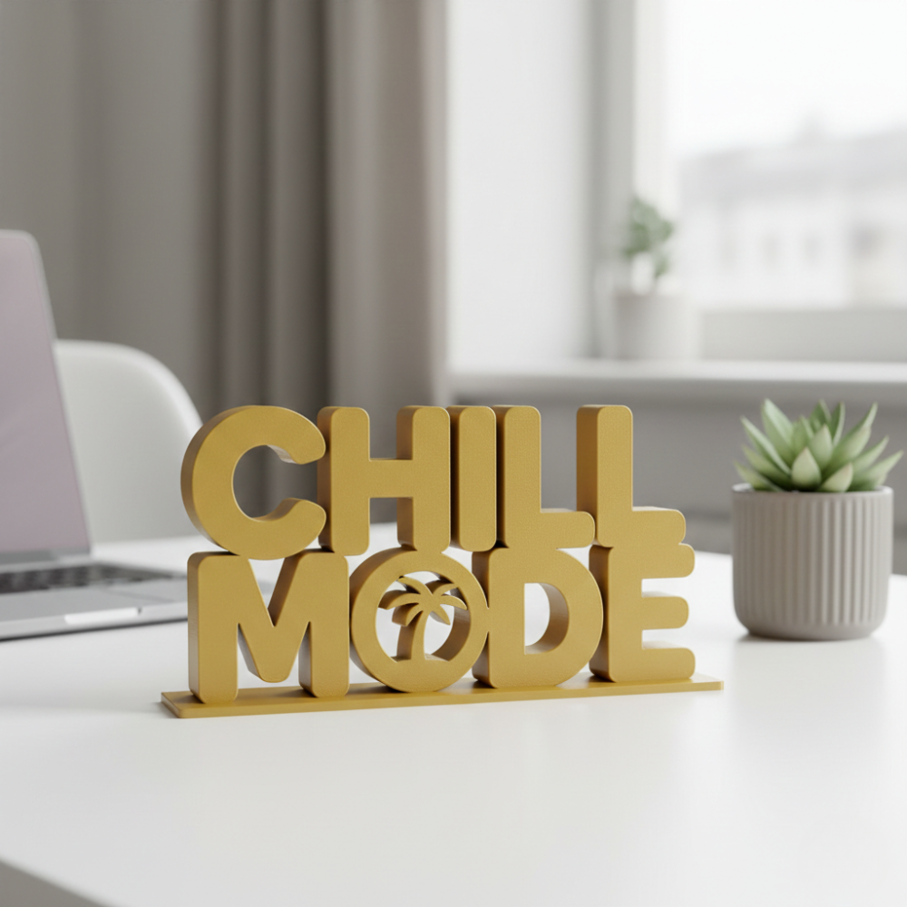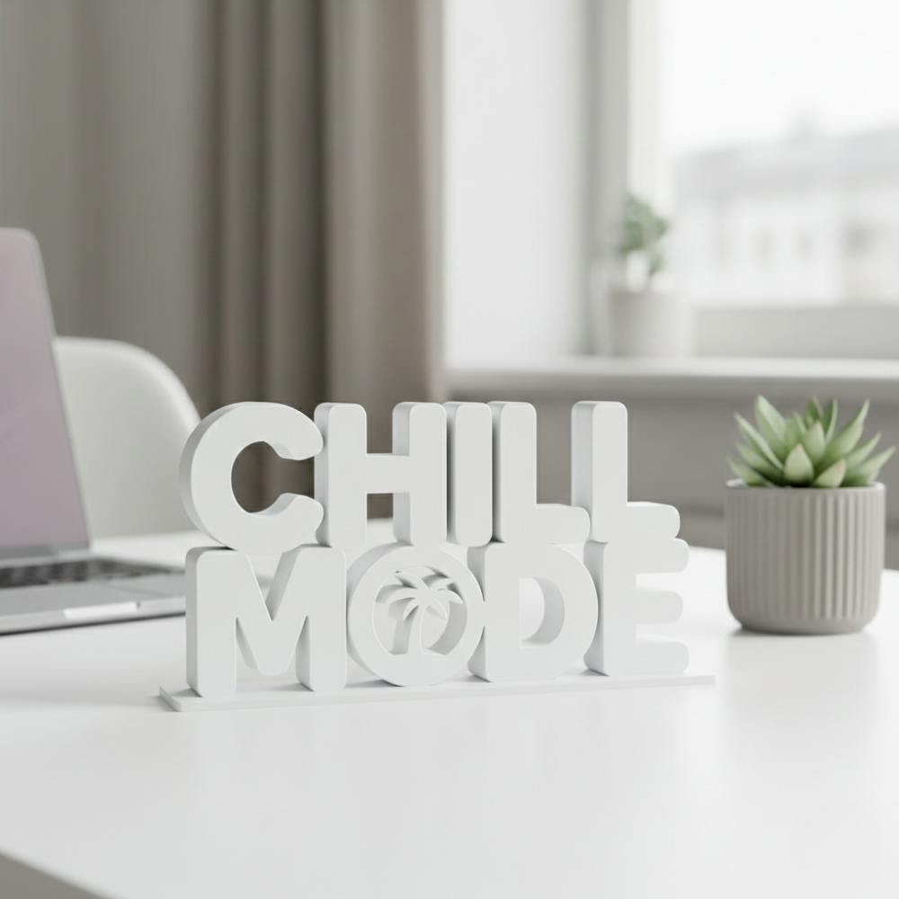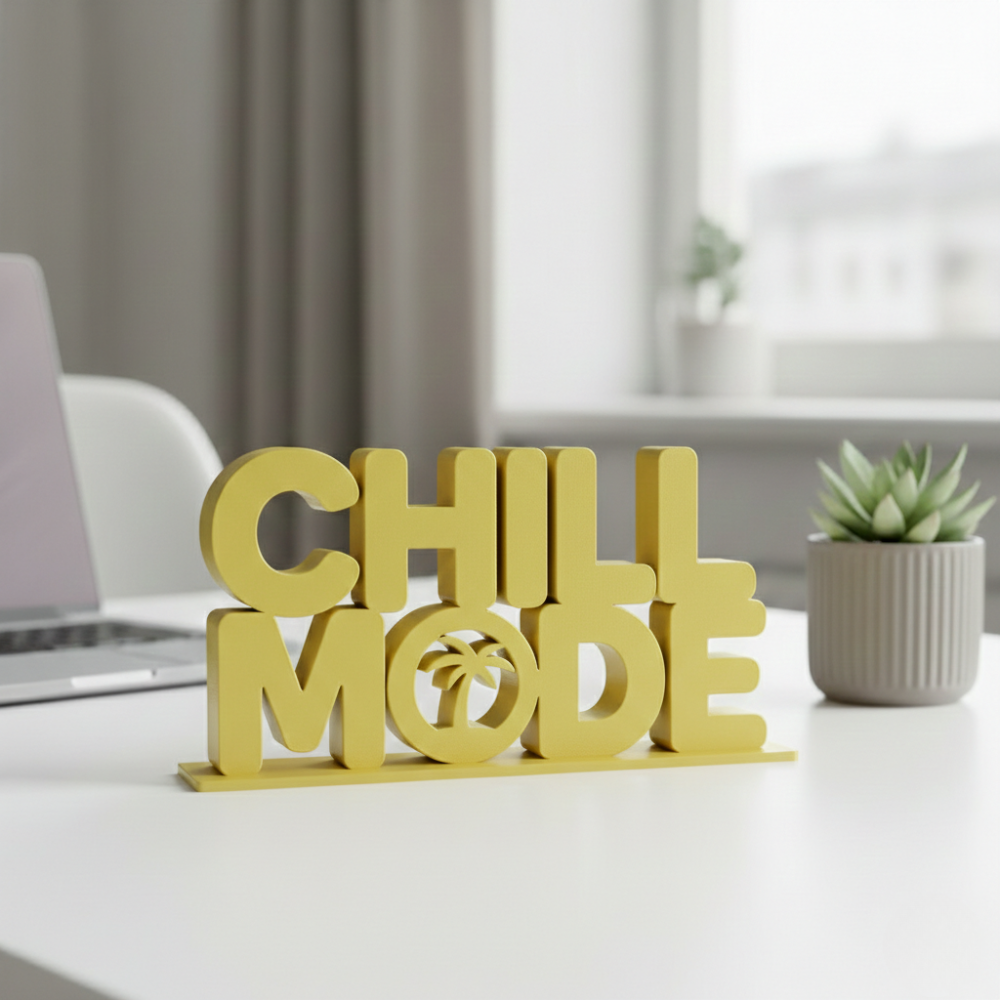 Upgrade your desk aesthetics with the Chill Mode 3D Printed Desk Décor, designed to add a relaxed and modern vibe to any workspace. This stylish desktop showpiece is precision 3D printed, giving it a clean finish, sharp edges, and a contemporary look that fits perfectly in professional and personal environments.