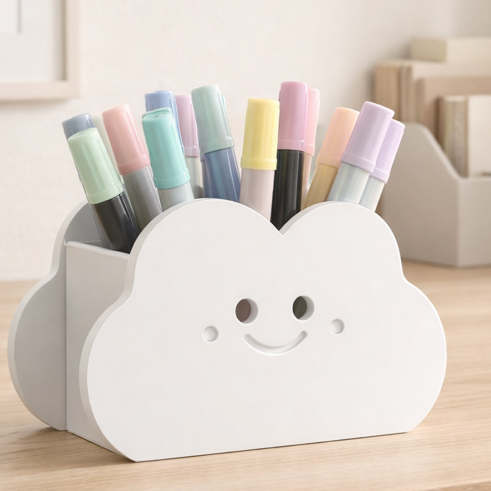 Cute Cloud Pen Organizer is a 3D printed desk organizer designed to keep pens, pencils, and stationery neatly arranged. Perfect for study tables, office desks, kids’ rooms, schools, and home workspaces, it adds a fun and organized touch to any desk.