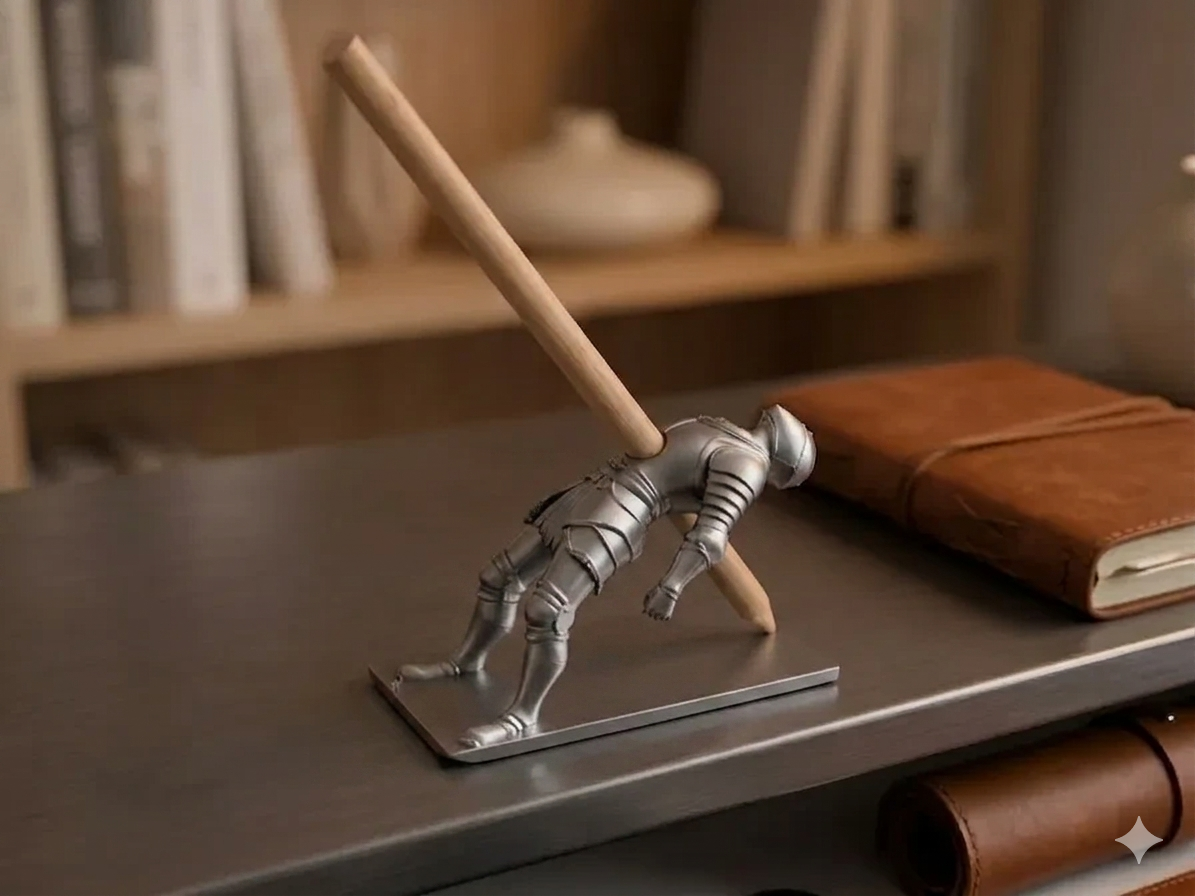 Bring history to your desk with this Dead Knight Pen Holder, a striking medieval-inspired desk organizer that blends creativity with functionality. Designed to look like a fallen warrior holding your pen, this piece instantly becomes a conversation starter in any space.