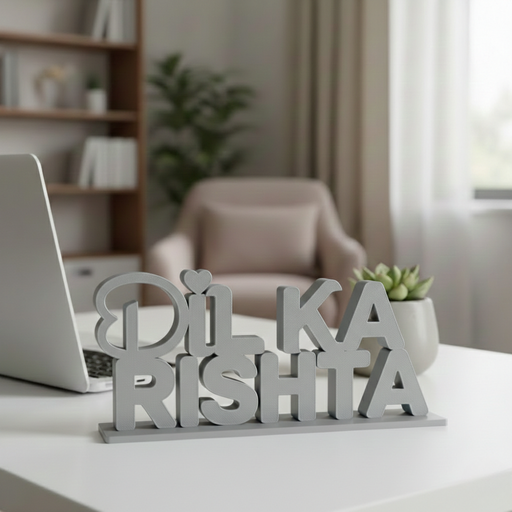 Dil Ka Rishta is a unique 3D printed decorative showpiece that represents love, connection, and emotional bonding. Designed with precision using high-quality 3D printing technology, this product adds a warm and romantic touch to any space.