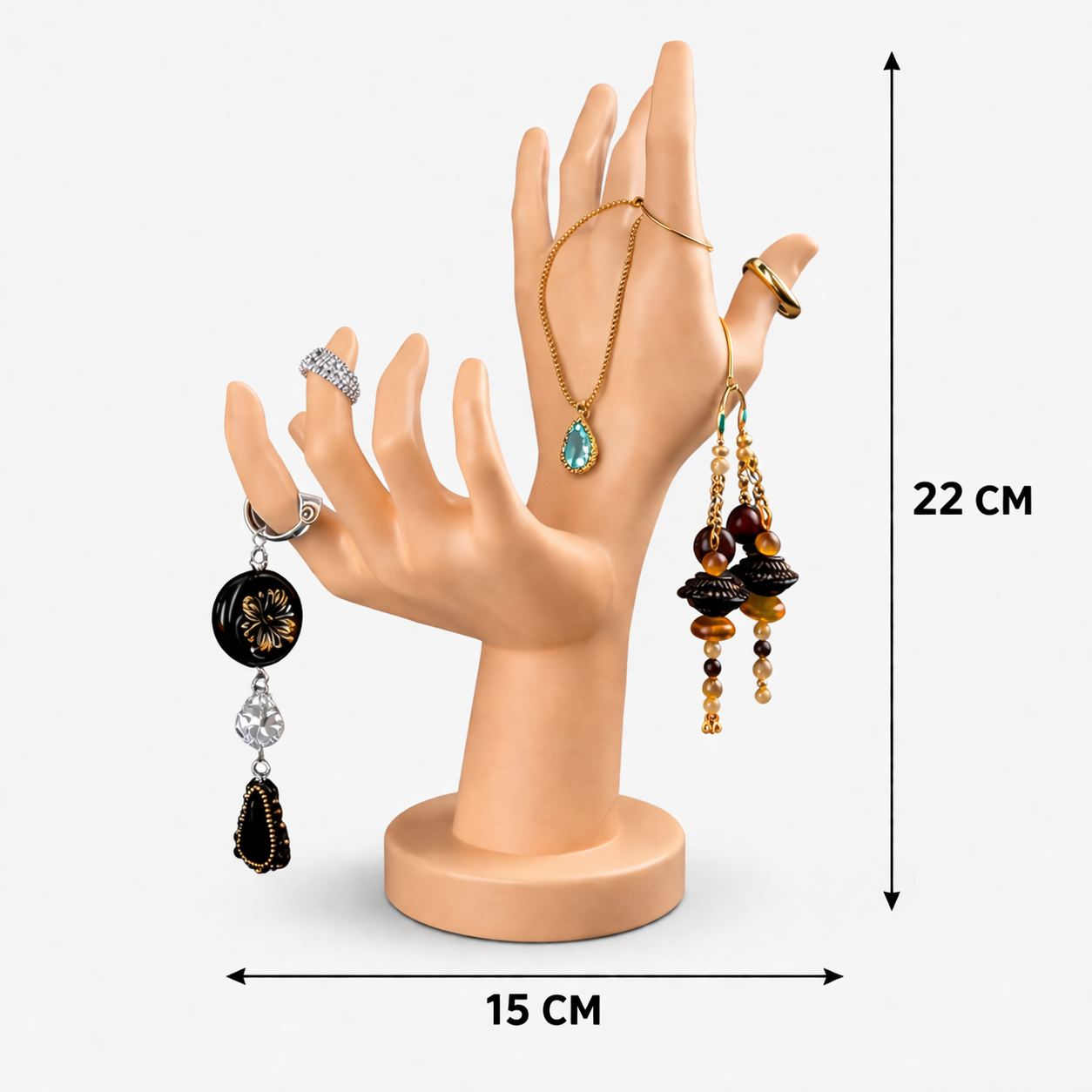 Showcase your jewelry in style with a premium dual-hand structure that enhances visibility and adds a modern decorative touch to your dressing table or store display.