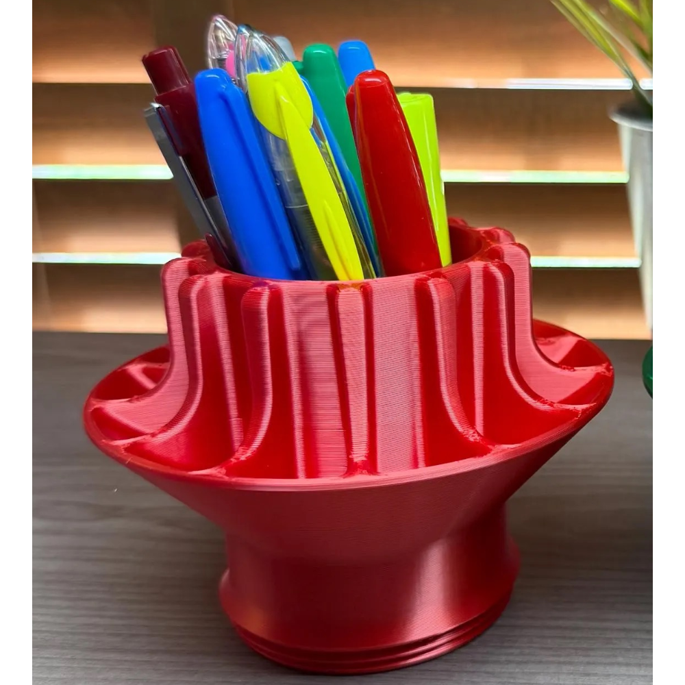 Whether used as a desktop storage holder, racing table décor, office organizer or car themed gift, this 3D printed F1 wheel nut pen holder makes your workspace look unique and stylish.