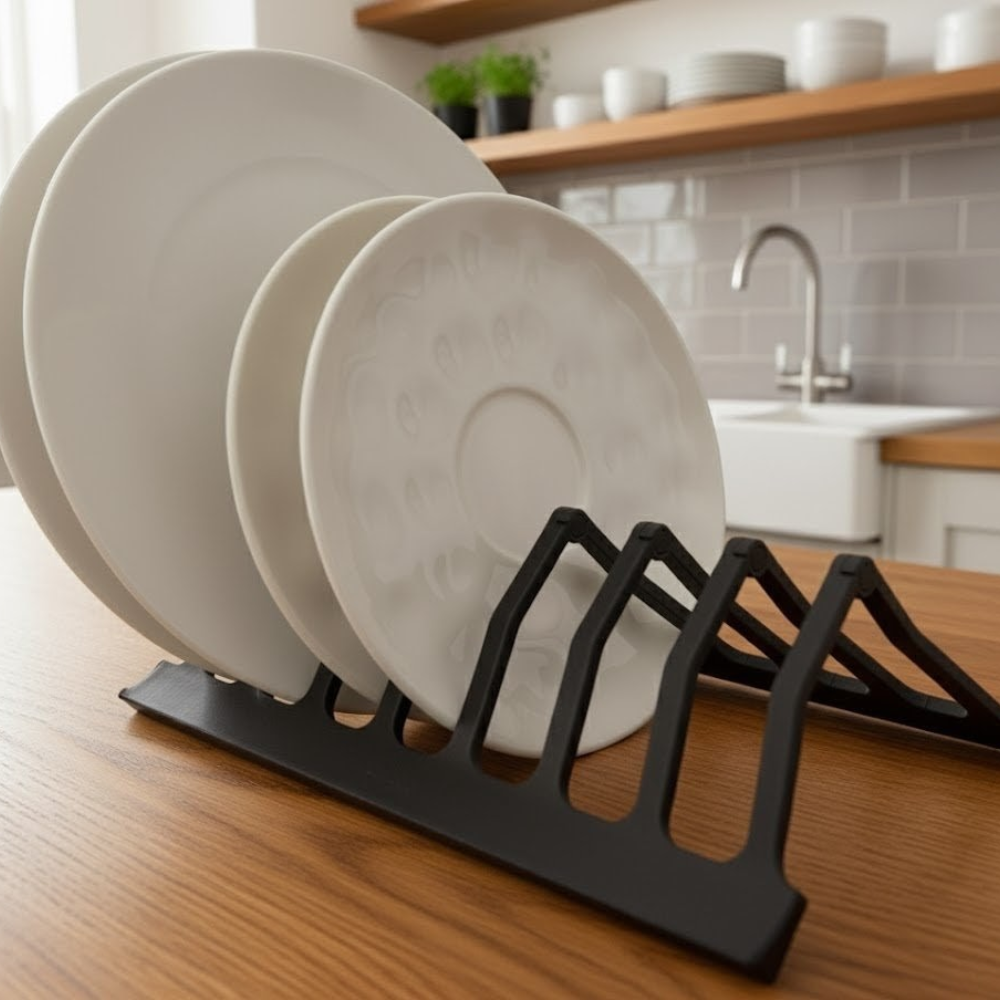 Manufactured using high-quality 3D printing technology, this dish rack is lightweight, durable, and precisely designed for everyday use. It securely holds plates, bowls, and utensils while allowing proper air circulation for faster drying.