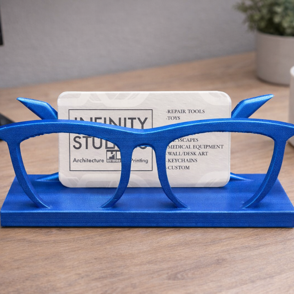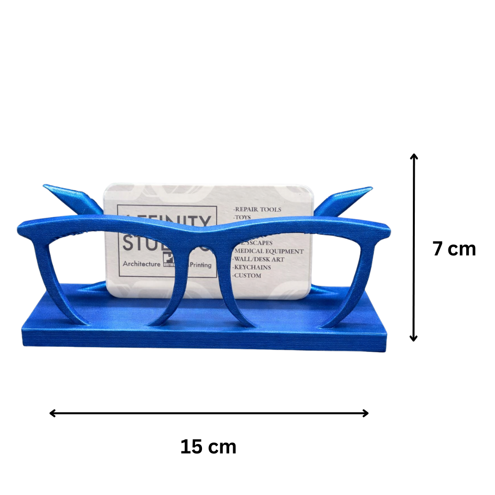 A stylish 3D printed glasses-shaped business card holder designed to keep visiting cards organized on office desks, reception counters, and home workspaces. A perfect blend of utility and modern desk décor for professionals, startups, clinics, and offices.