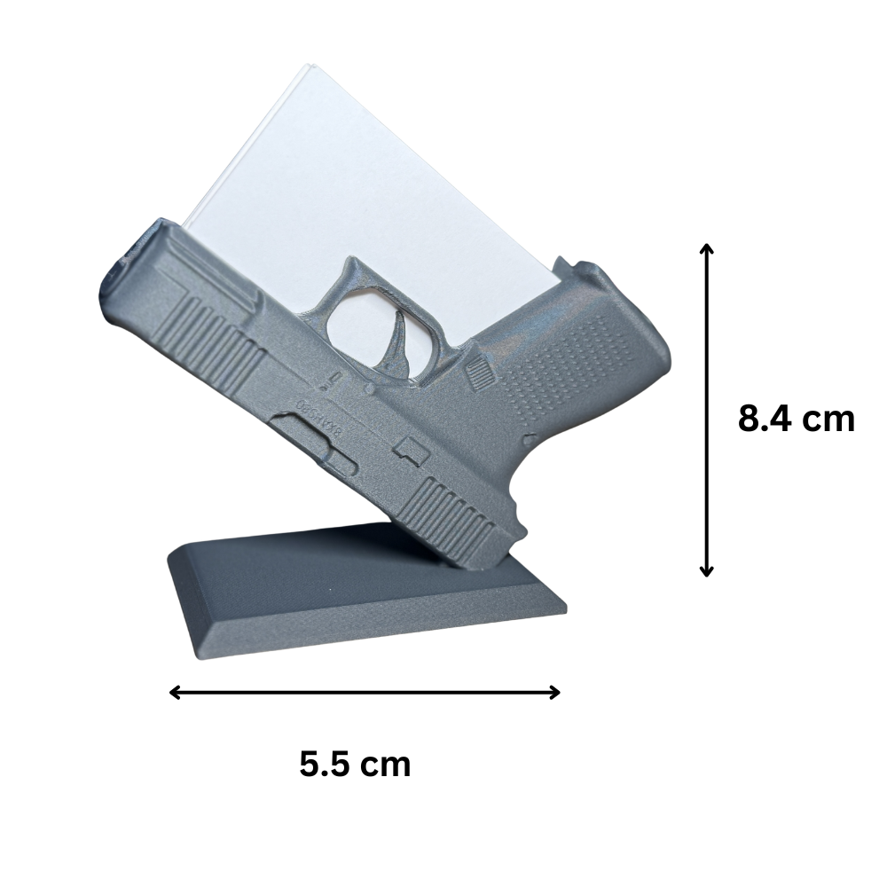 Bring a powerful impression to your office desk with our Glock Gun-Design Business Card Stand — a stylish, modern and conversation-starter accessory for professionals.