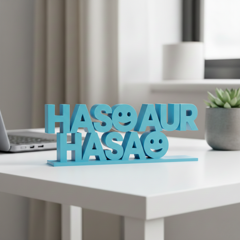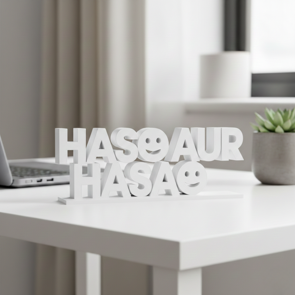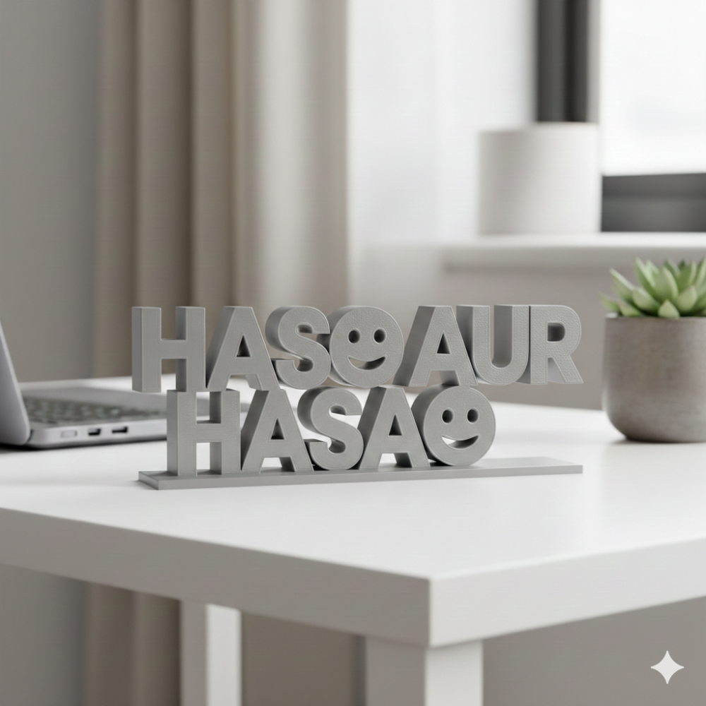Haso Aur Hasao is a thoughtfully designed 3D printed motivational desk showpiece, ideal for modern workplaces and corporate environments. Crafted using high-quality 3D printing technology, this product delivers a clean finish, lightweight structure, and long-lasting durability.