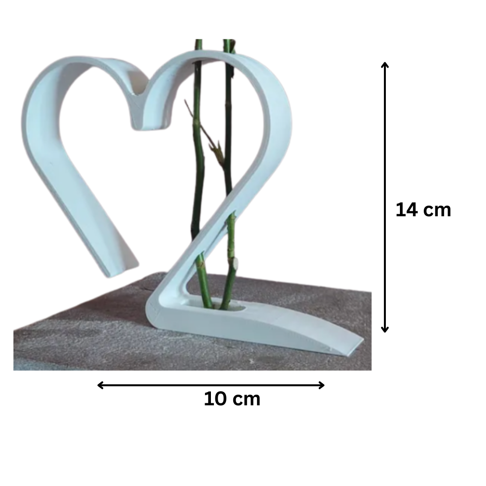A beautifully 3D printed heart-shaped vase designed to hold two roses, symbolizing love and togetherness. Perfect for home decor, romantic gifting, anniversaries, Valentine’s Day, weddings, cafes, and office desks. A modern decorative piece that adds elegance and emotion to any space.