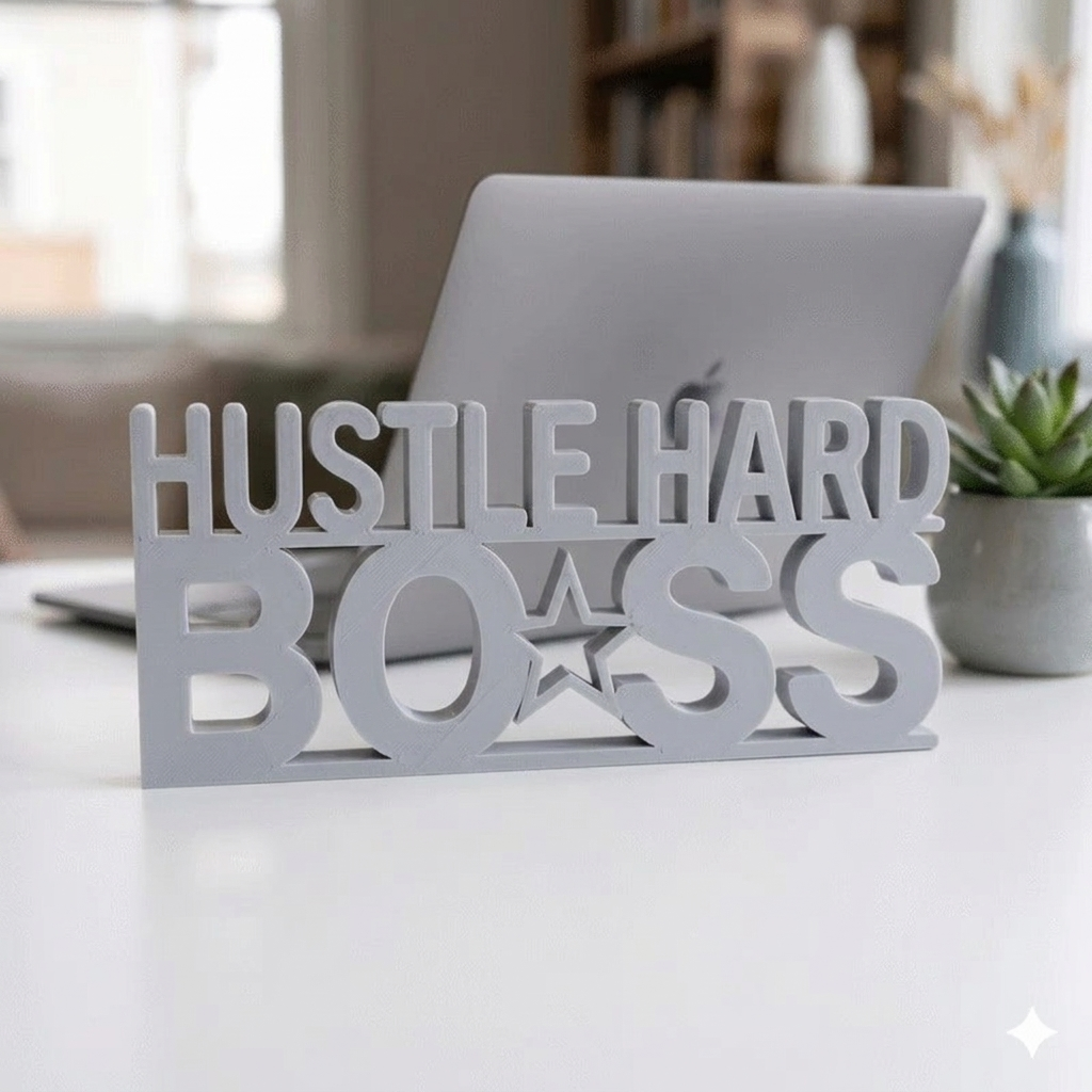 Add a bold statement to your workspace with this Hustle Hard Boss 3D Printed Desk Sign, crafted using high-quality 3D printing technology. This motivational desk accessory is designed to inspire productivity and confidence, making it an ideal choice for professionals and businesses.