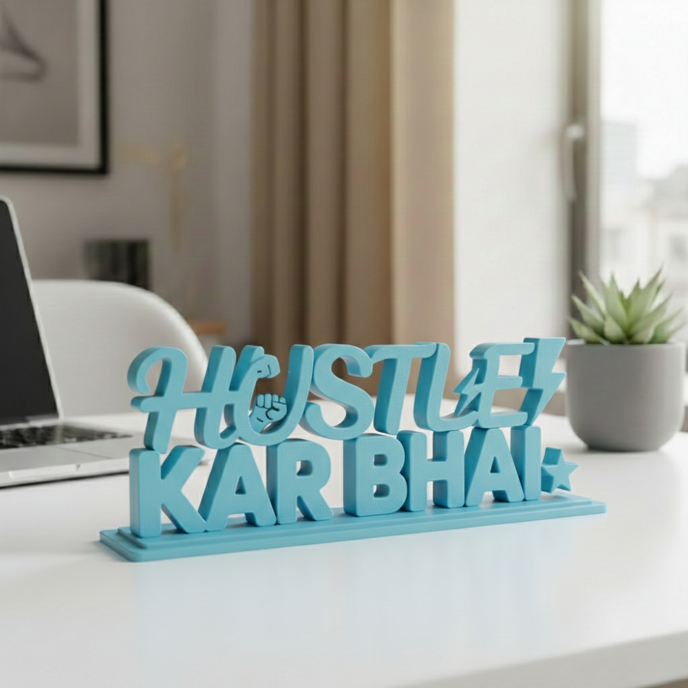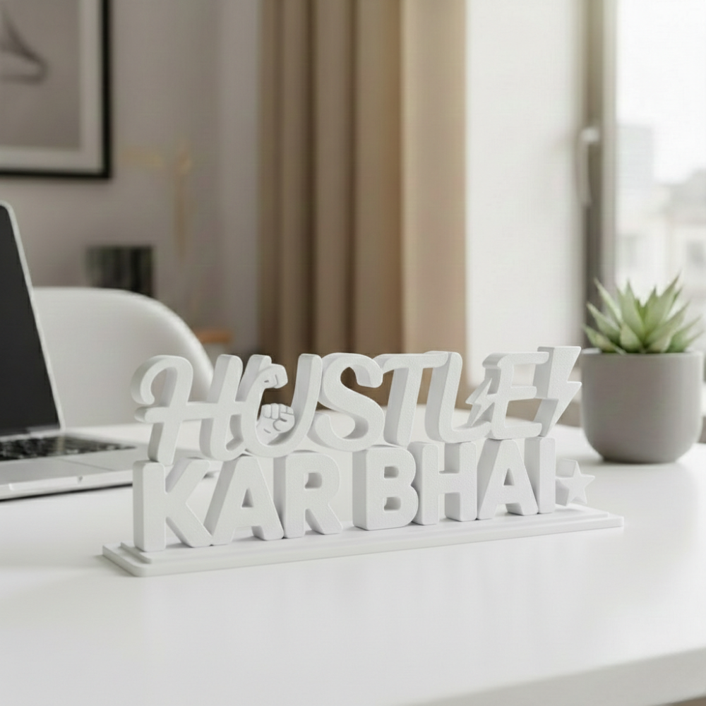 Bring motivation to your everyday work routine with Hustle Kar Bhai, a bold and inspiring 3D printed desk decor designed for hustlers, dreamers, and go-getters.
