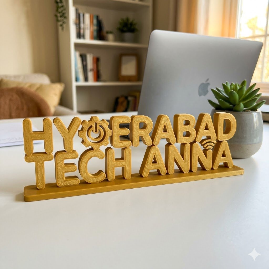 Upgrade your workspace with this Hyderabad Tech Anna 3D Printed Desk Sign, specially designed for modern professionals and tech enthusiasts.