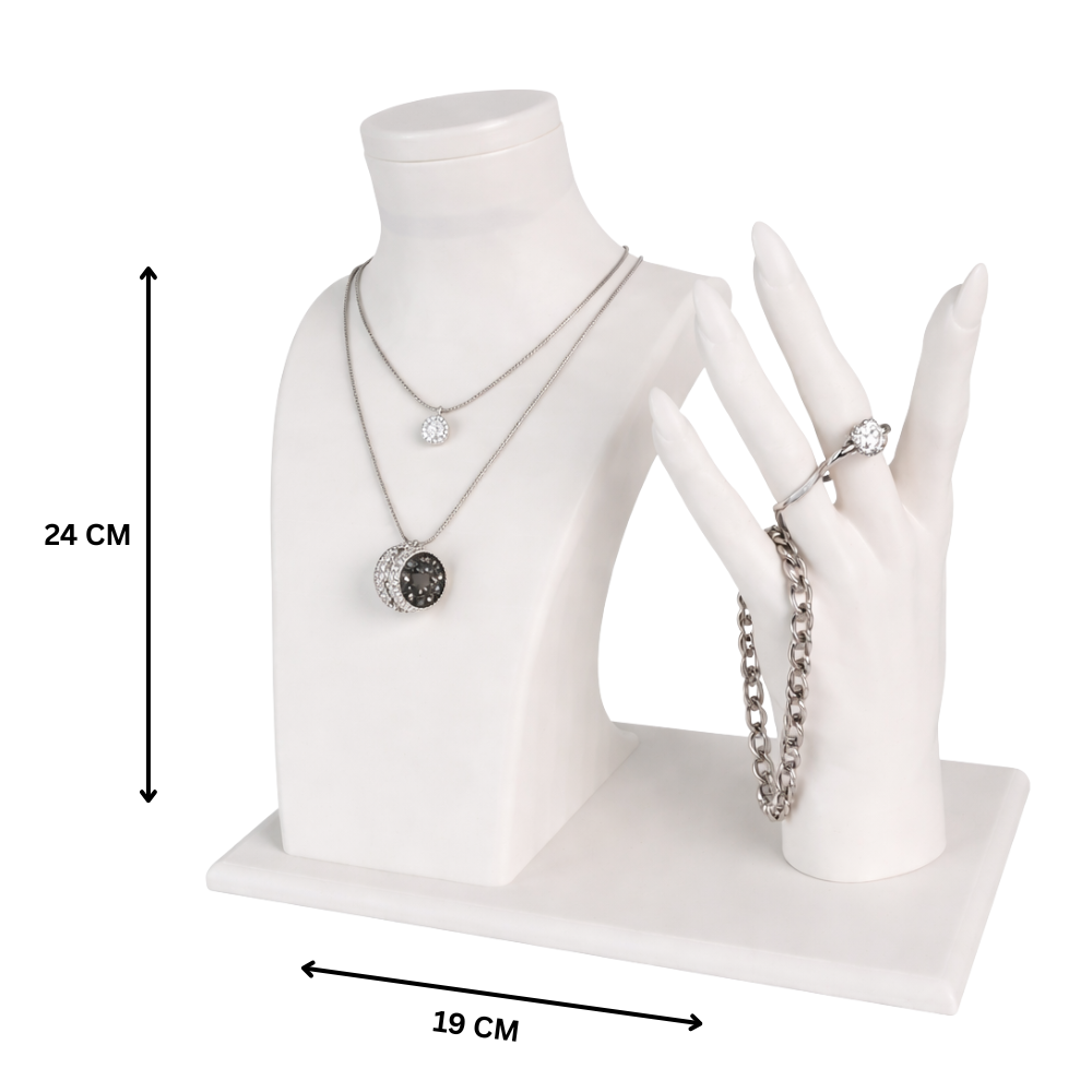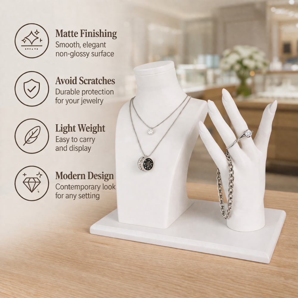 Jewellery Display Mannequin Set for Necklace & Hand Jewellery – Matte Finish, Scratch Resistant, Modern Design, Lightweight Display Stand for Shops, Exhibitions & Home Use (White Color)