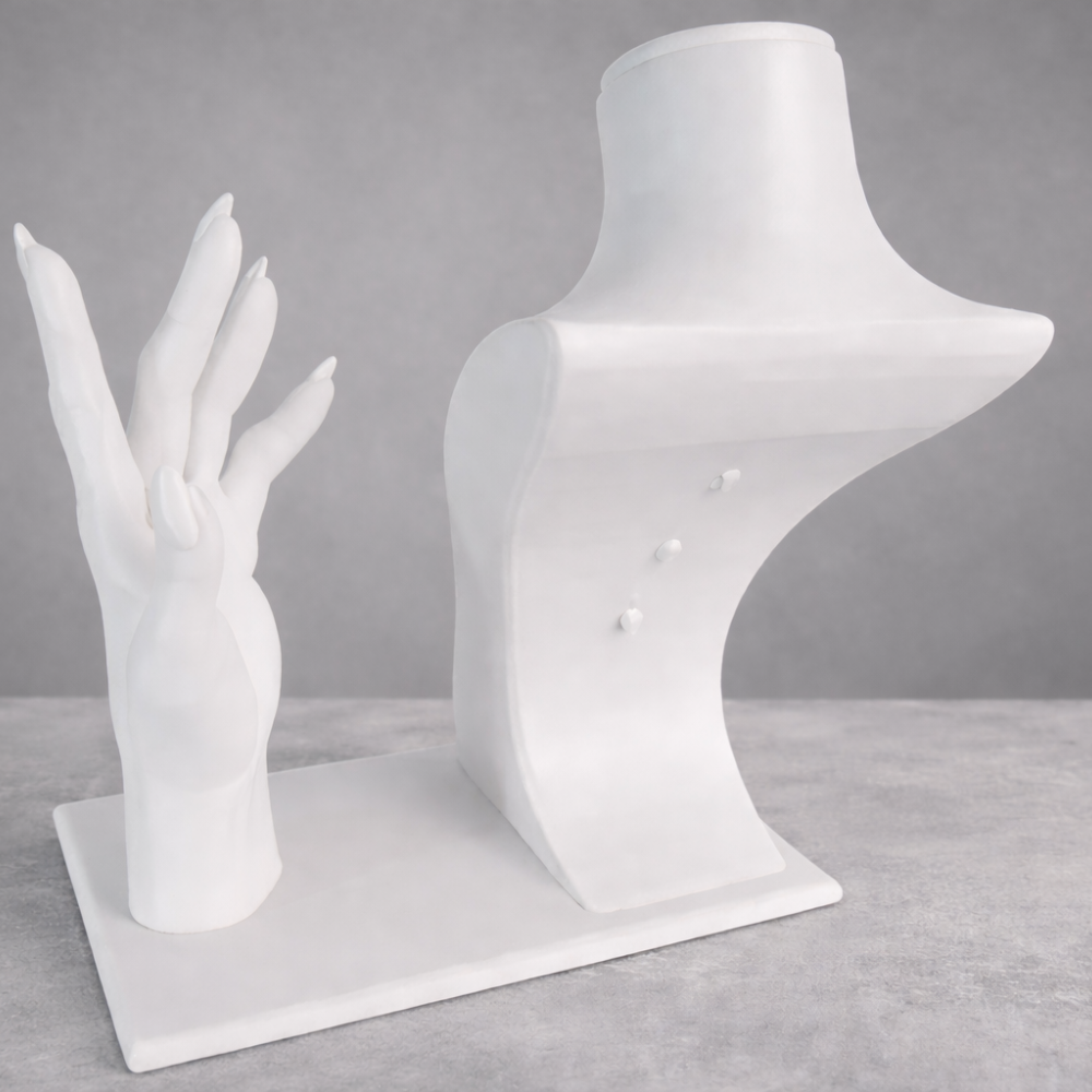 Enhance your jewellery presentation with this premium Jewellery Display Mannequin Set, designed for both necklace and hand jewellery display. The matte finish surface ensures scratch resistance and eliminates unwanted reflections, making your jewellery stand out beautifully.