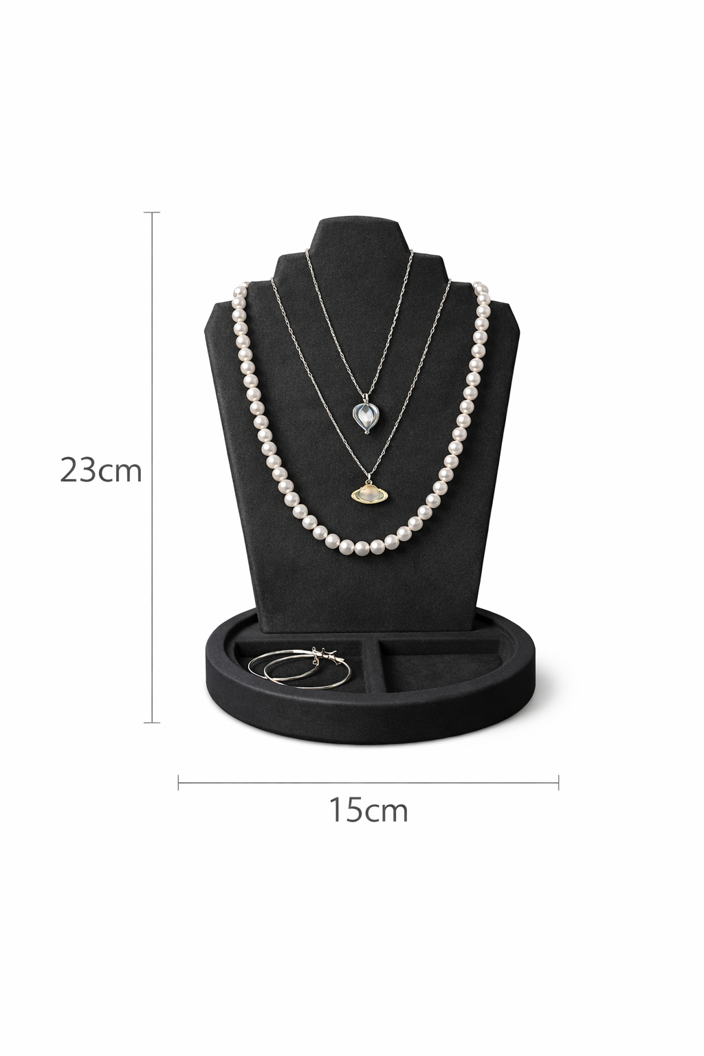 Upgrade your jewelry organization with this elegant jewelry display stand with tray, designed for both functionality and style. The bust-shaped design allows you to neatly display necklaces and chains without tangling, making it ideal for everyday use or professional showcases.