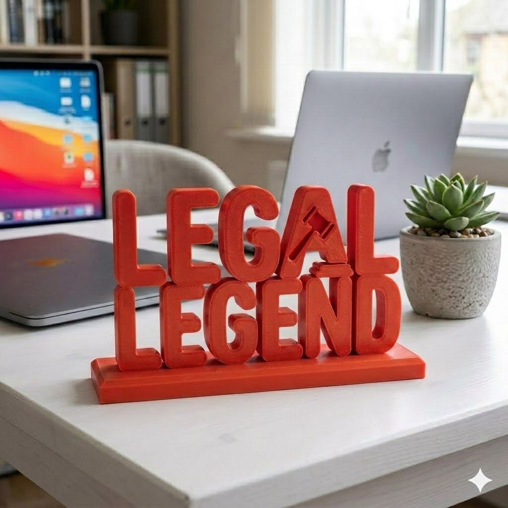 Showcase your professional identity with the Legal Legend 3D Printed Desk Sign, specially designed for legal professionals who want to enhance their workspace with a bold and modern touch.