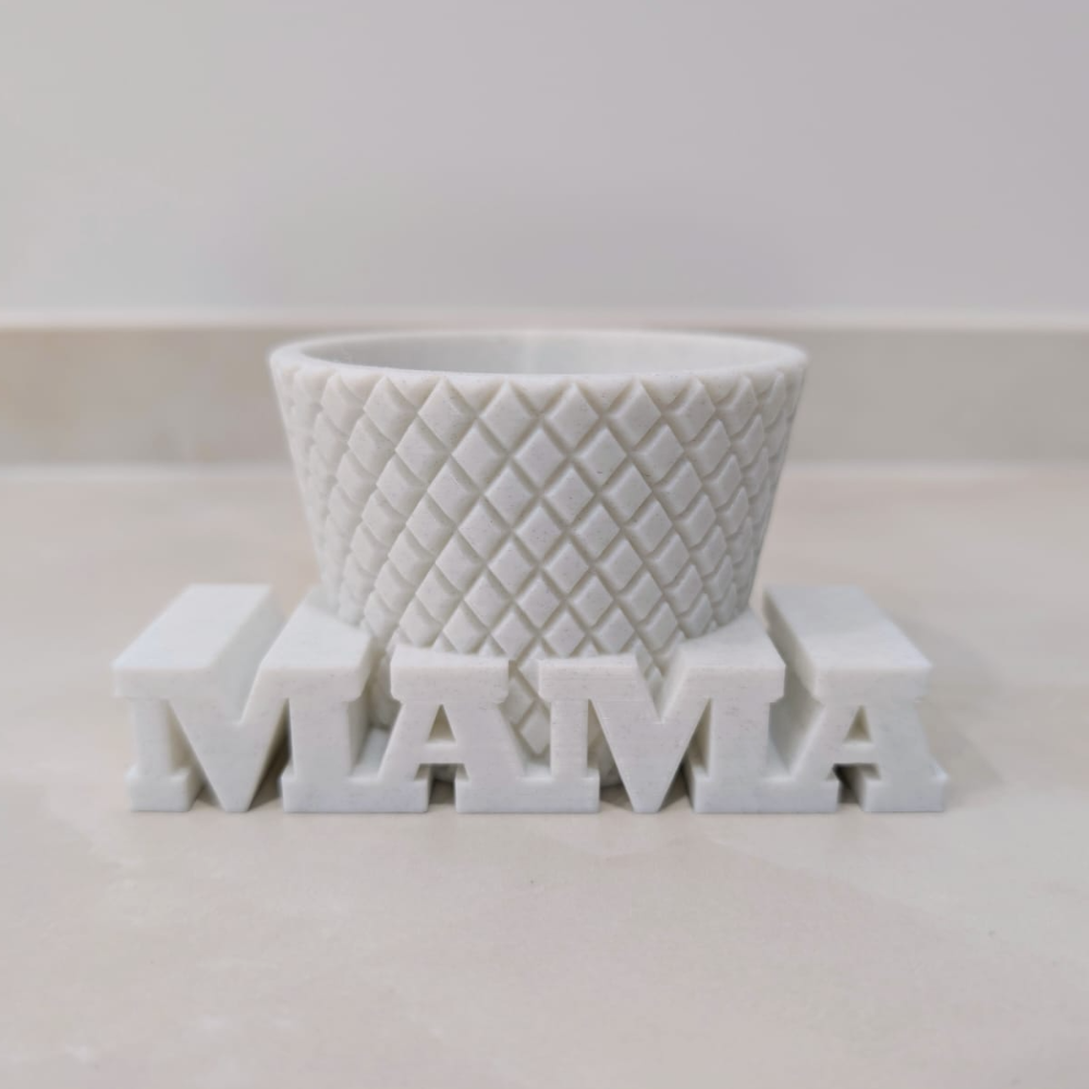 The MAMA Planter is a meaningful and modern 3D printed plant pot created to celebrate motherhood, family bonds, and love. Designed with a clean and elegant look, this planter is perfect for home decor, office decor, indoor gardening, desk decoration, shelf styling, and gifting purposes.