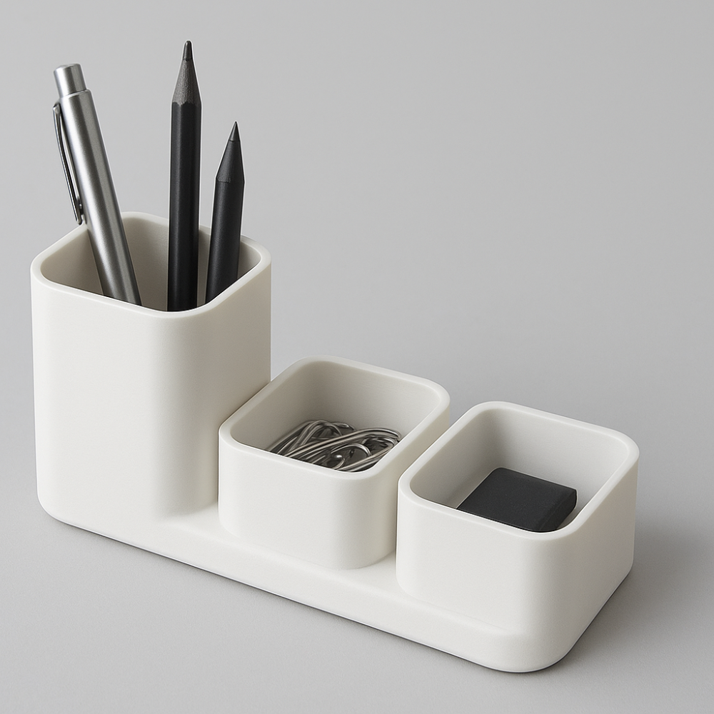This minimal desk organizer 3D printed product is not just a storage item—it’s a smart workspace upgrade that combines functionality, design, and modern manufacturing.
