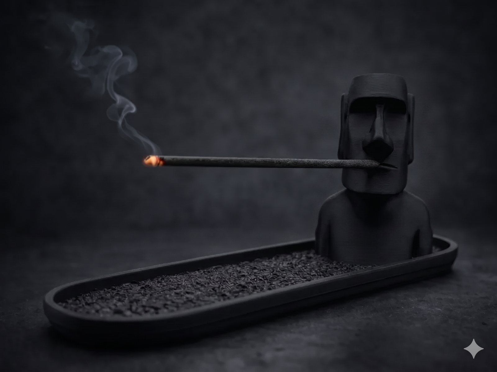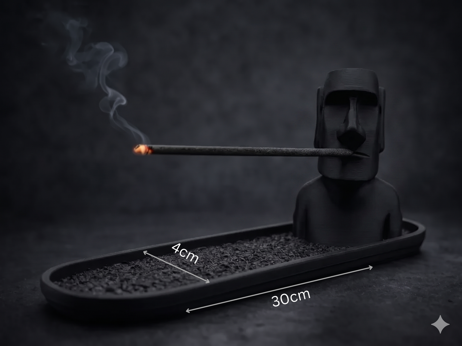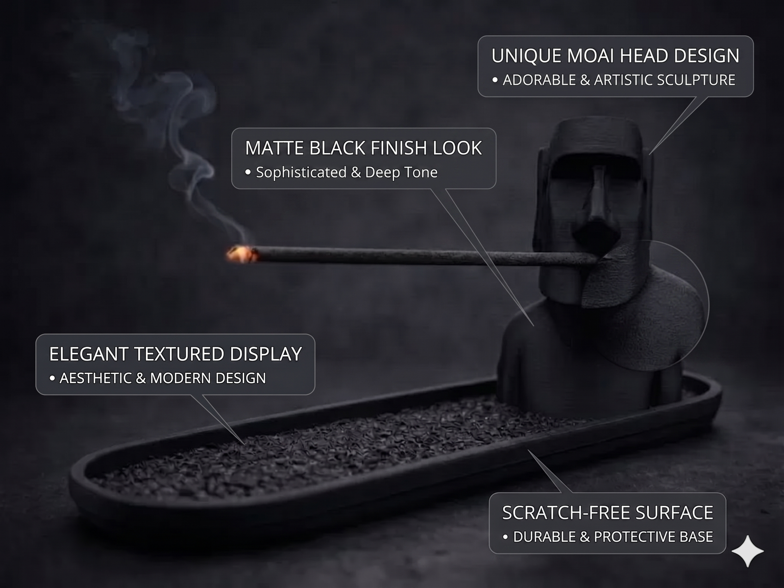 Moai Incense Holder – Premium 3D Printed Easter Island Statue | Matte Black Agarbatti Stand for Home Decor, Office & Meditation | Durable Lightweight Ash Catcher & Unique Artistic Gift