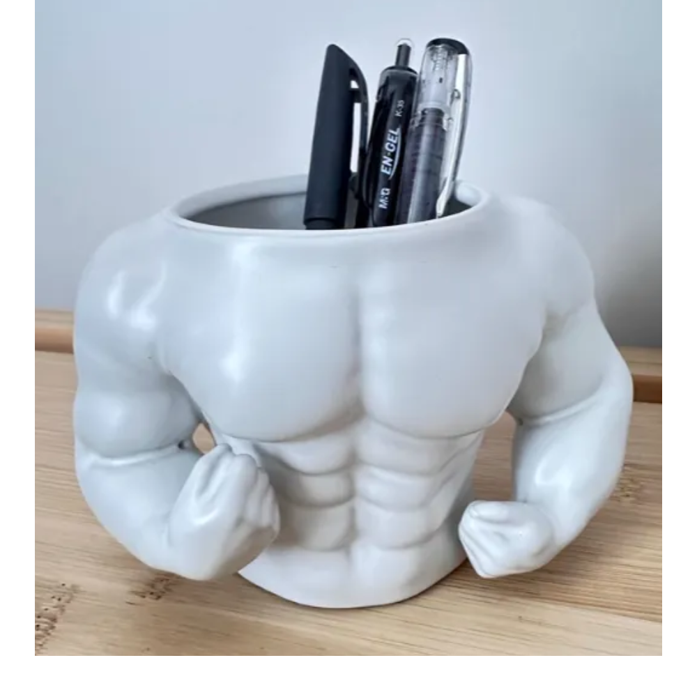 A unique muscular man pen holder designed for gym lovers, fitness trainers, office desks, and gifting. Strong, stylish, and perfect for holding pens, markers, or tools while adding a bold fitness vibe to your workspace.