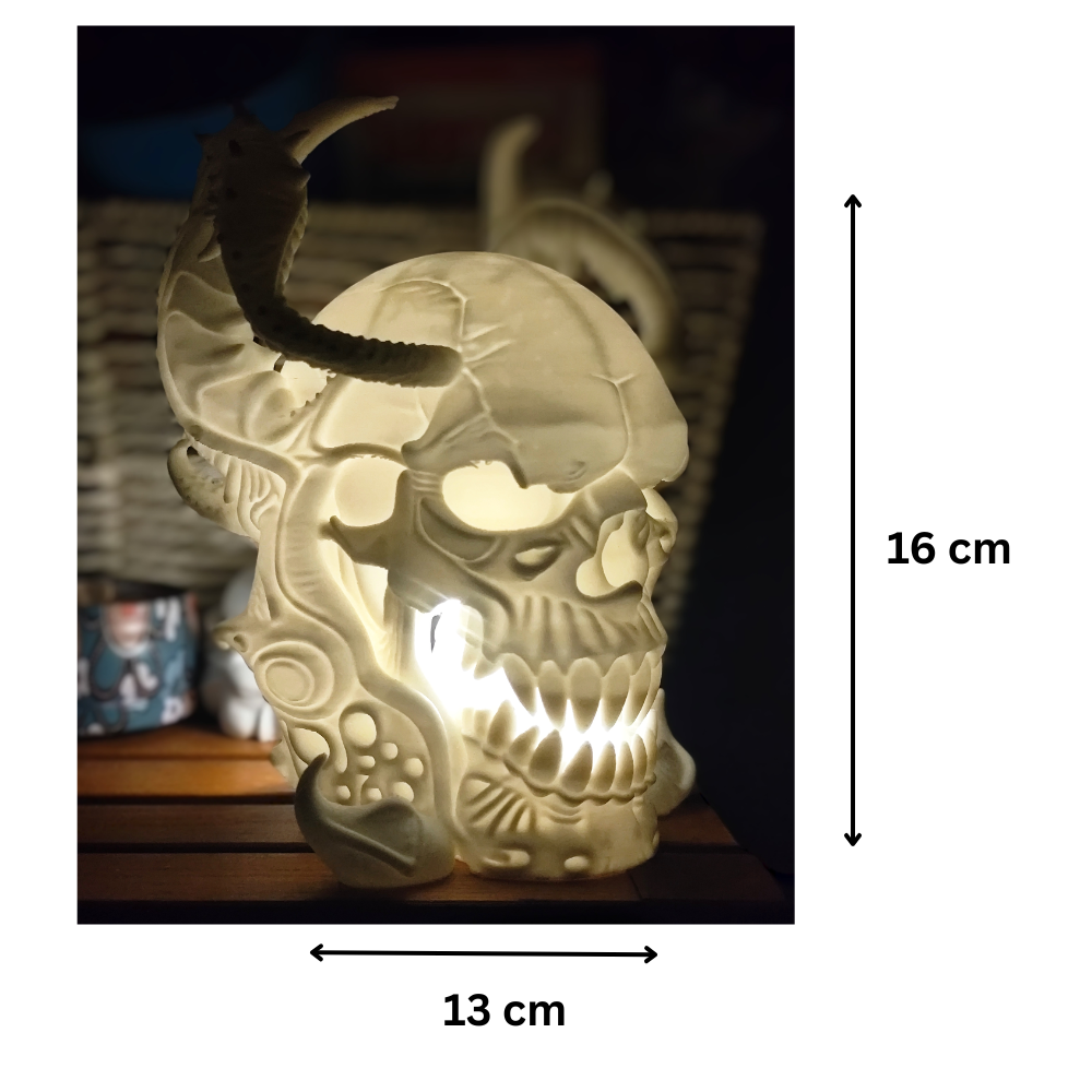 Bring a bold and eye-catching aesthetic to your space with our Mutation Skull – Lamp, a high-quality 3D-printed decorative light designed for modern homes, offices, studios, and industrial workspaces. The striking mutation-inspired skull structure creates dramatic shadows and a warm LED glow, making it a standout collectible for art lovers, tech enthusiasts, and décor enthusiasts.