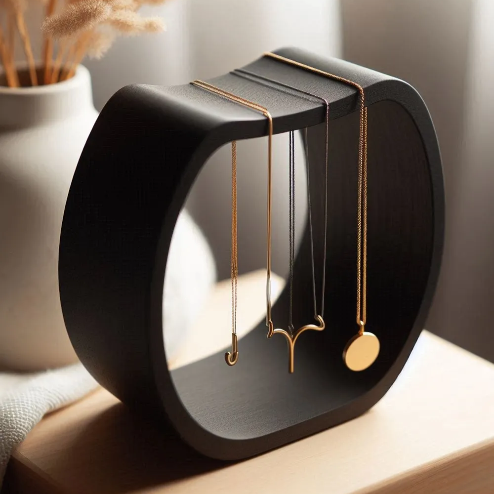 Modern curved structure enhances visibility and keeps necklaces tangle-free.