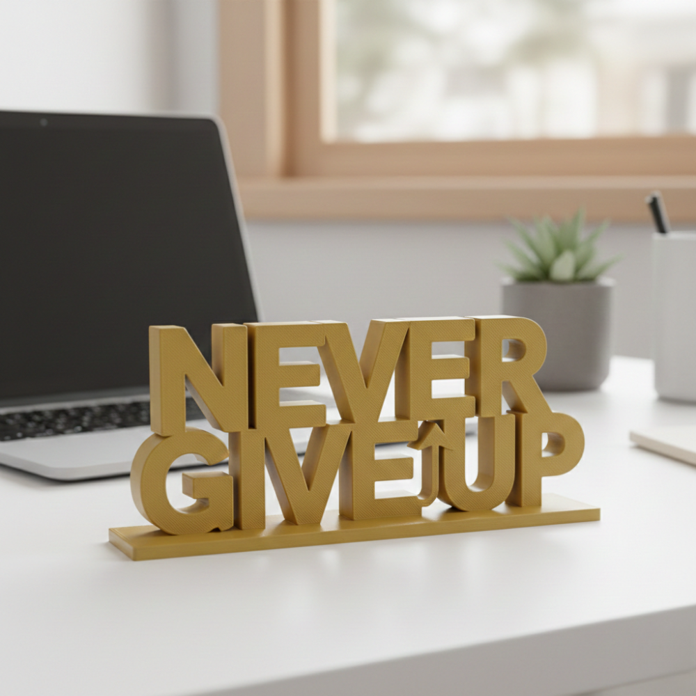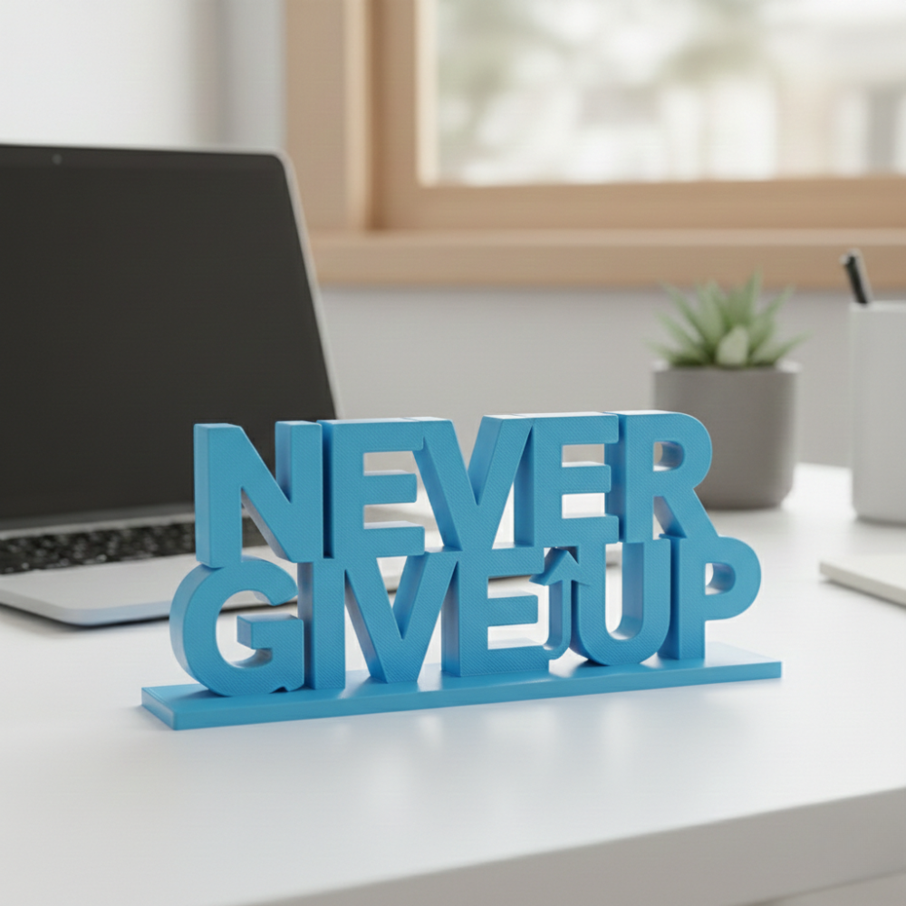 The Never Give Up Motivational Desk Showpiece is a thoughtfully designed 3D printed utility gift that inspires positivity, consistency, and growth in professional environments. Crafted using high-quality PLA material through precision 3D printing, this desk décor piece is lightweight, durable, and visually impactful.