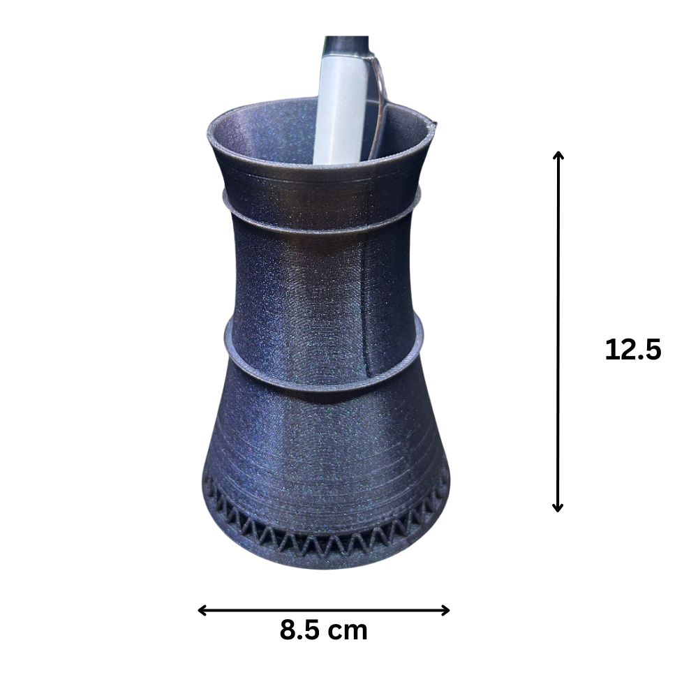 A 3D printed Nuclear Cooling Tower Pen Holder designed for offices, power plants, engineering desks, airlines offices, manufacturing industries, educational institutes, and corporate gifting.