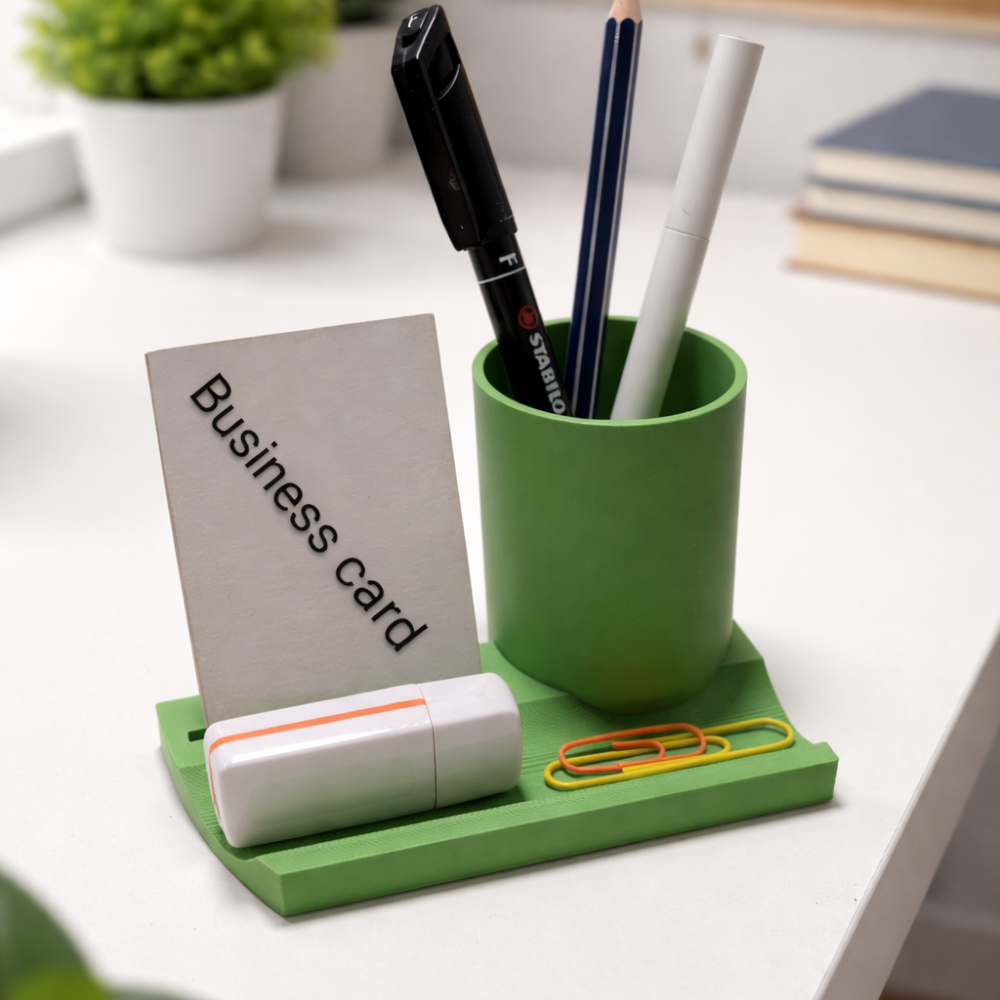 Keep your workspace neat and professional with this 3D Printed Office Pen and Card Holder. Designed for offices, study tables, workstations, and reception desks, it neatly stores pens, visiting cards, and essentials while enhancing desk aesthetics. Ideal for daily office use and professional gifting.