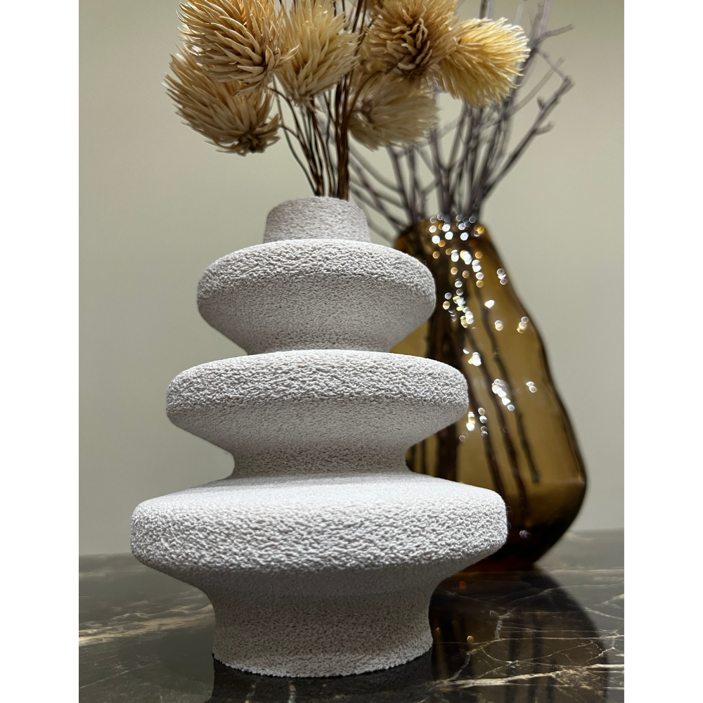 Enhance your space with this beautifully crafted 3D Printed Oriental Temple Vase featuring a unique fuzzy skin texture. Perfect for spiritual events, mandir décor, home decoration, birthdays, anniversaries, festivals, and corporate gifting. Lightweight, durable, and made from eco-friendly PLA, this designer vase adds a premium aesthetic to any event or interior setup.