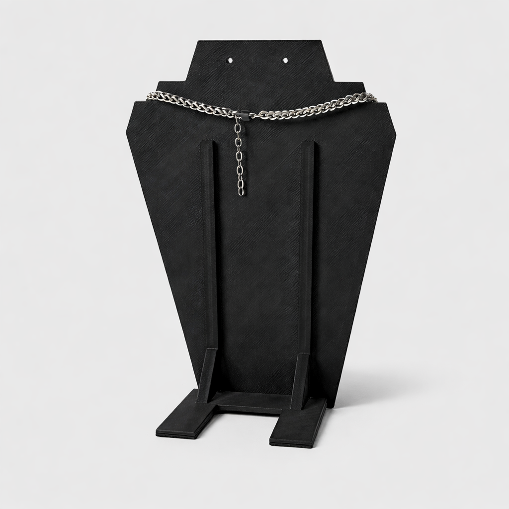 Crafted using precision 3D printing technology, this stand features a sharp geometric design with a smooth matte black finish that enhances the brilliance of your jewelry. The dark tone provides a striking contrast, making necklaces stand out beautifully in retail stores, exhibitions, and stylish home setups.