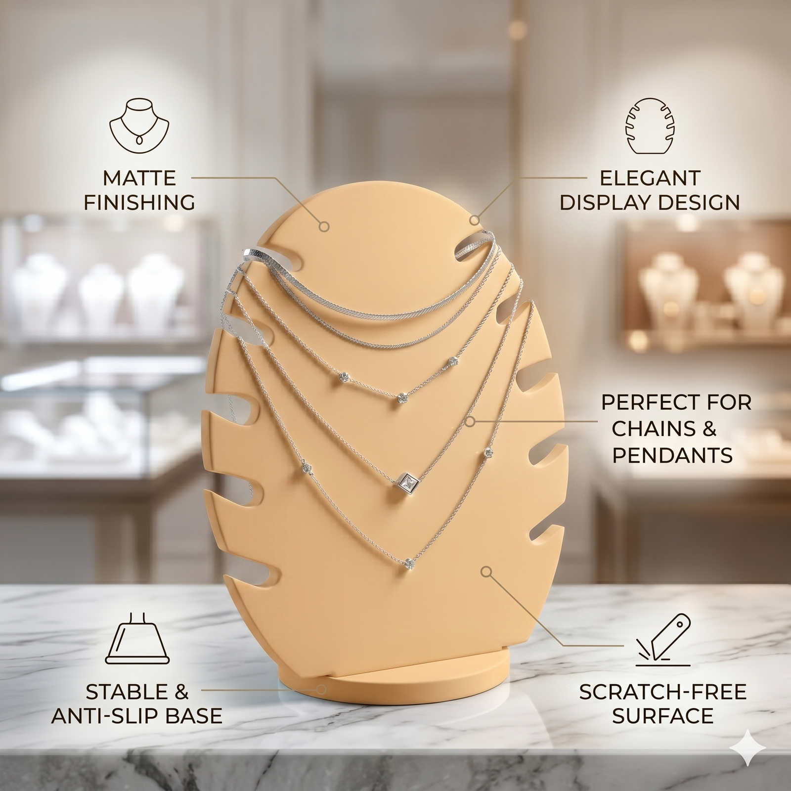 STABLE & SCRATCH-FREE BASE: Engineered with a weighted, anti-slip base to ensure your jewelry stays secure. The smooth matte finish is gentle on all metals, protecting your precious necklaces from wear.